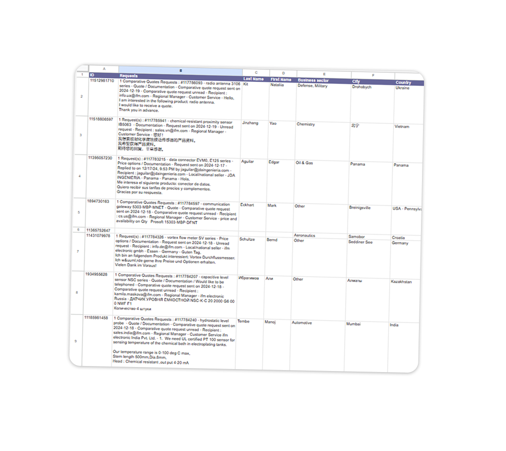 Inquiries sent to your international sales team