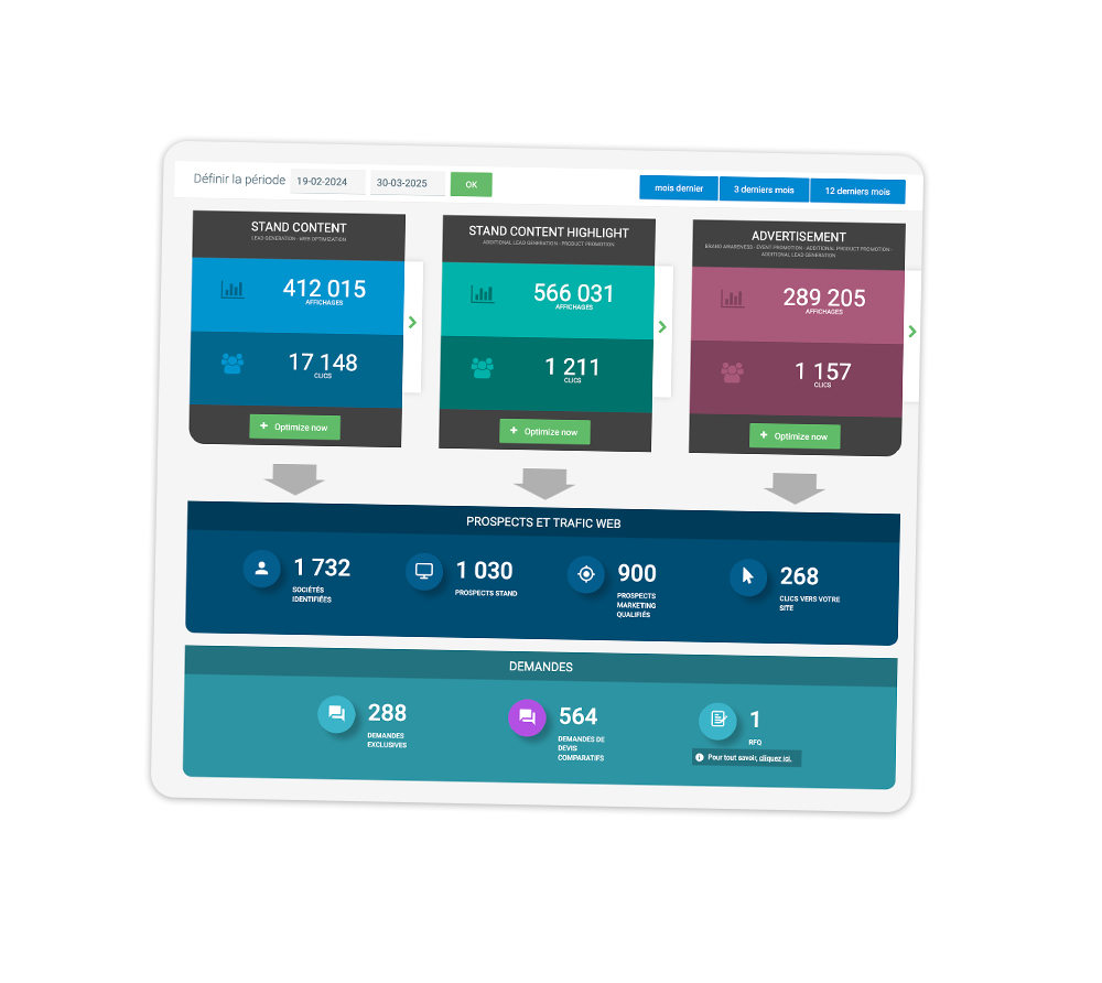 Your stand consists of a suite of pages dedicated to your brand, specifically designed to optimize the conversion of visits into qualified leads — sent directly to your international sales force. It also includes many backlinks to generate qualified traffic to your website, 9 of which are DoFollow (Starter pack excluded), helping to strengthen your SEO.