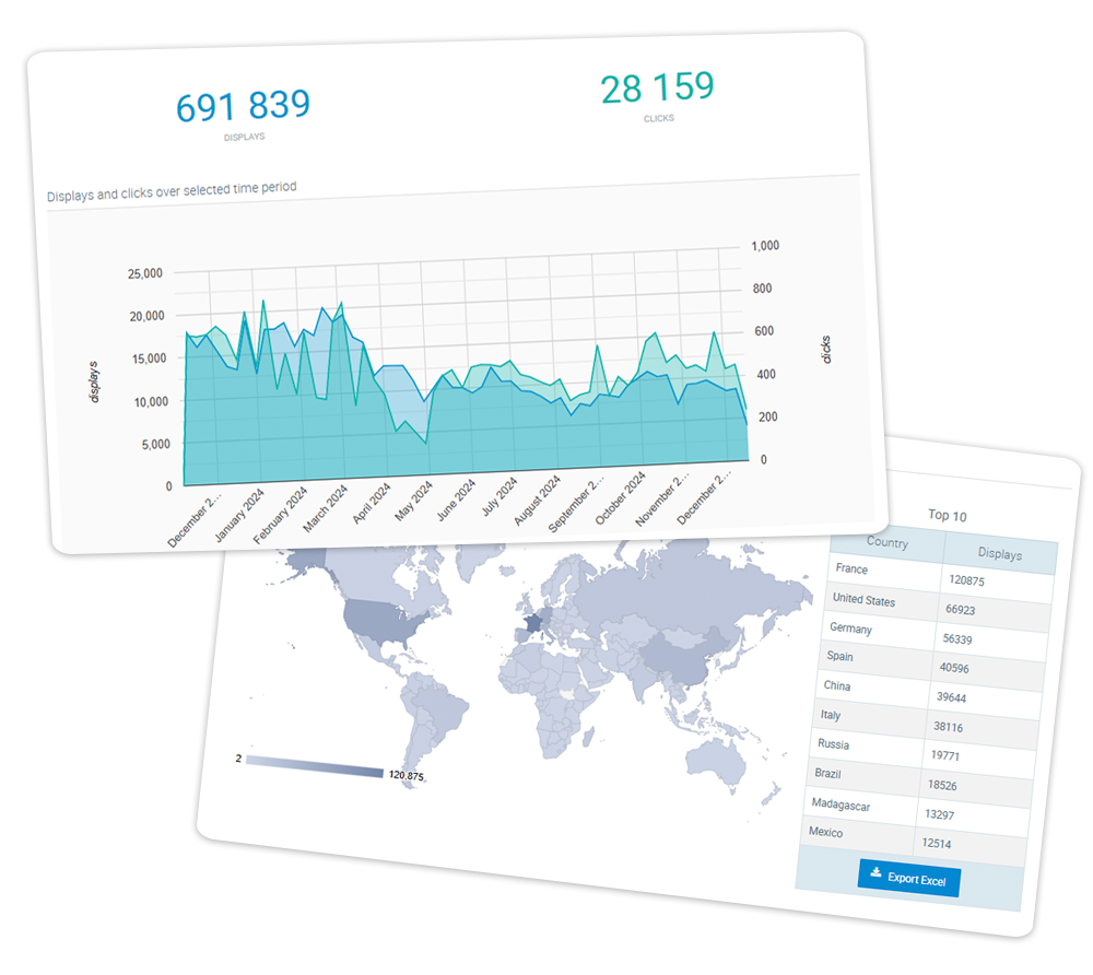 Evolution charts and country breakdowns, etc.