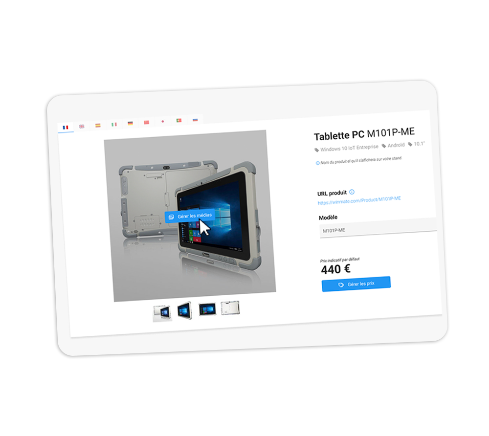 With AI-powered updating everying becomes simpler: juste paste in the product link, and AI generates your products complete with images definitions, descriptions, and technical specifications — translated into 9 languages. Of course, you remain in full control to edit and refine every detail.