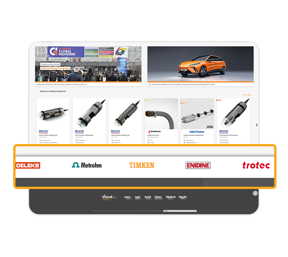Your logo, linked to your stand, rotates alongside other prestigious brands
